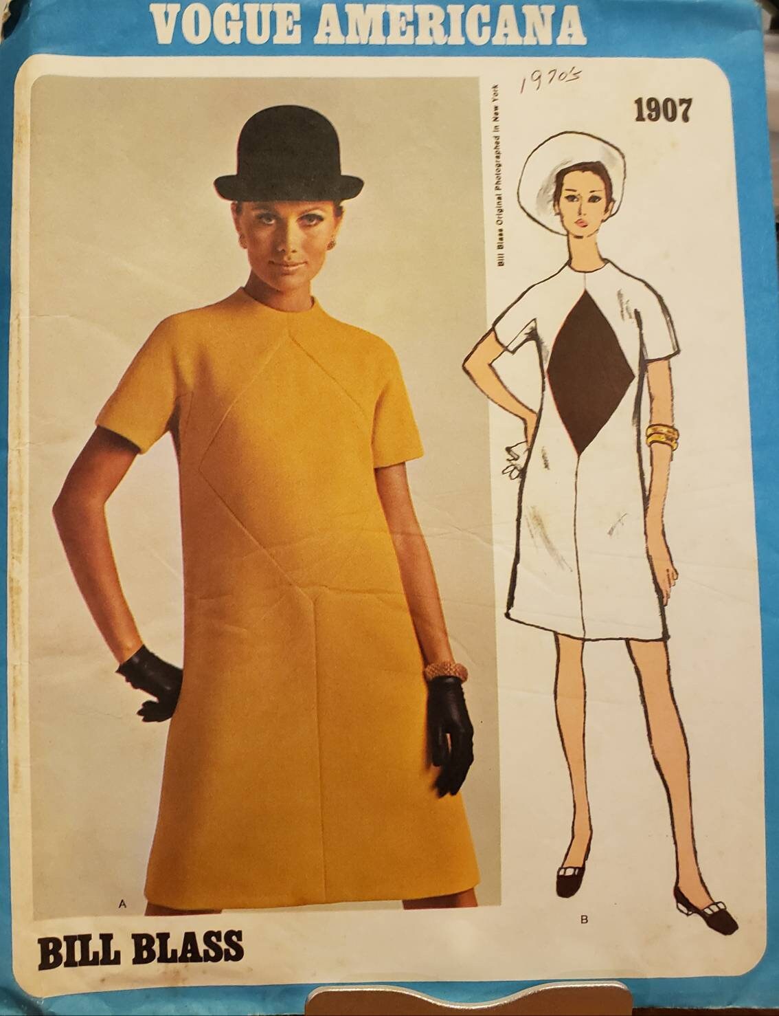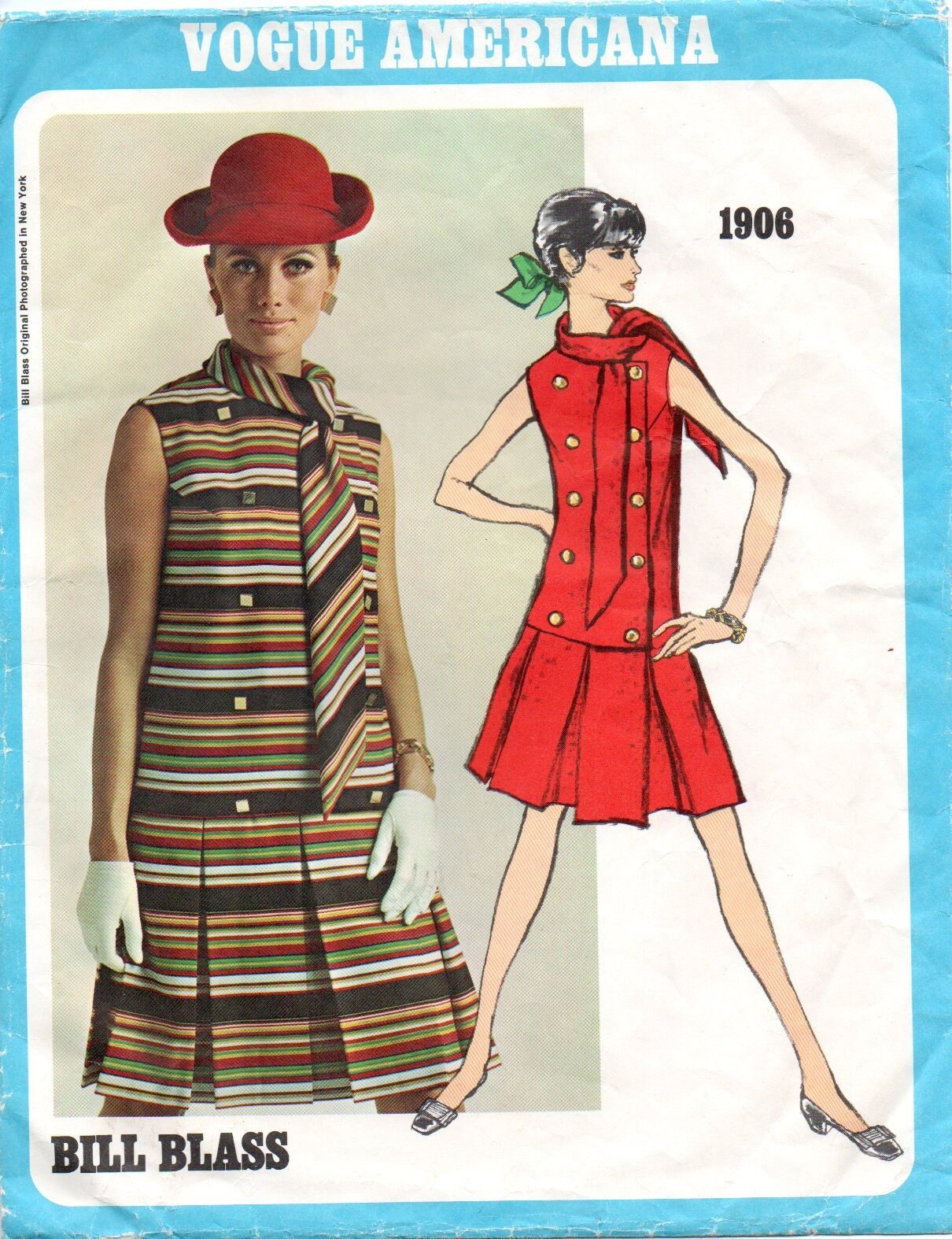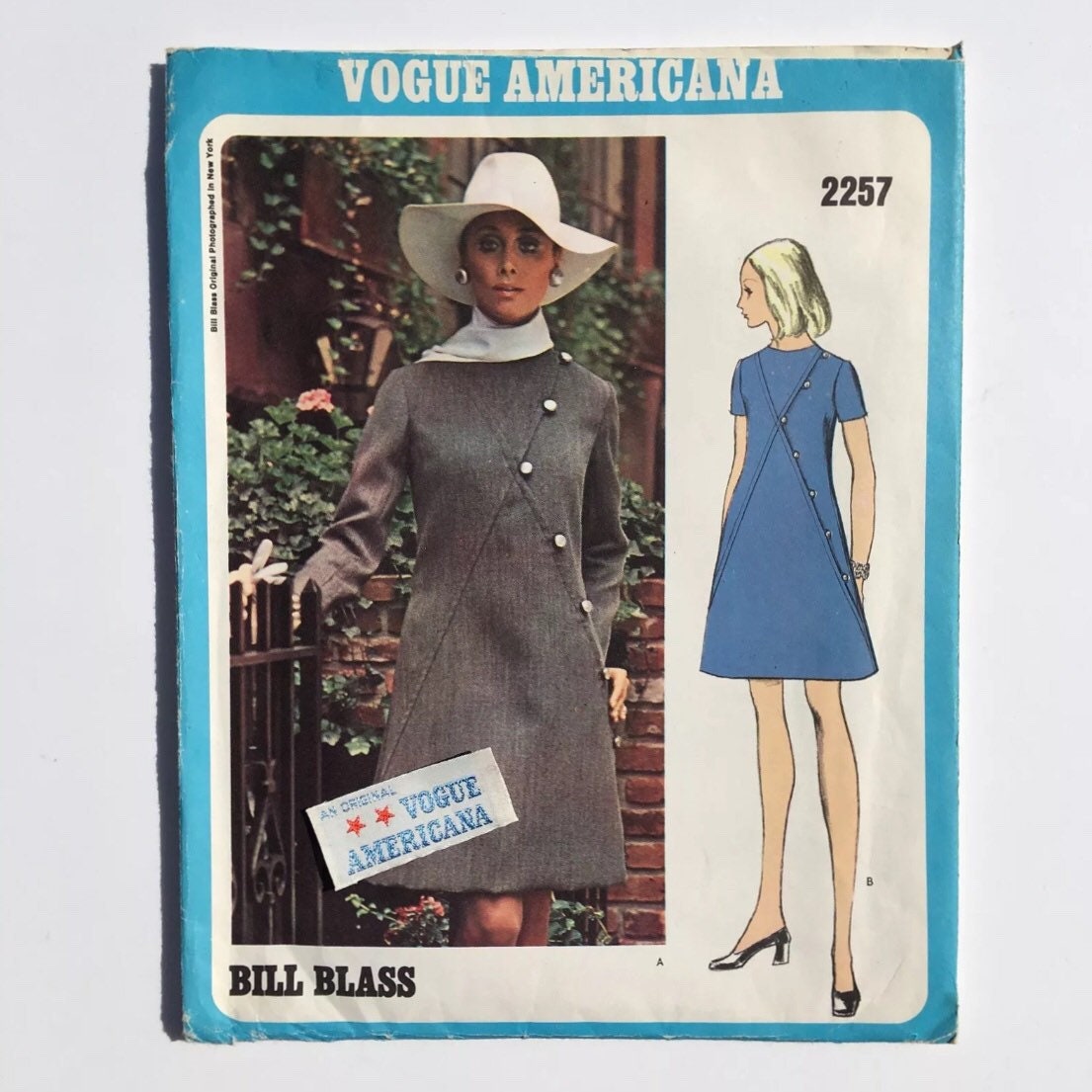 1970 Mod Dress Pattern Vogue Americana 2299 Bill Blass A Line Dress Bust 36 Vintage Sewing Pattern